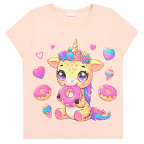 Стильная футболка из хлопкового трикотажного полотна прекрасно дополнит твой гардероб. Модель кроя оверсайз дополнена эластичной горловиной и ярким принтом. Создавай стильные яркие образы, сочетая модель с юбкой или брюками из новой коллеции!