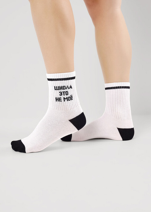 Носки для мальчика и для девочки с выделенным мысом и пяткой с надписью Школа это не мое