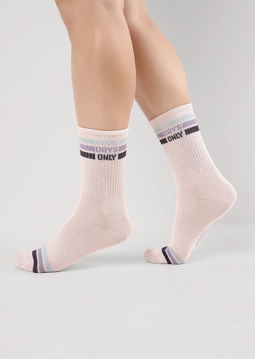 женские носки с цветными полосками и надписью