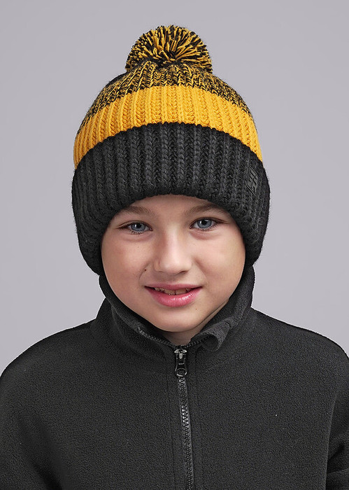 Акция Clever Шапка детская CLE 433838ап флис чёрный/горчичный