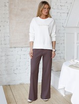 Прямые брюки с поясом на резинке из фактурного трикотажа в рубчик