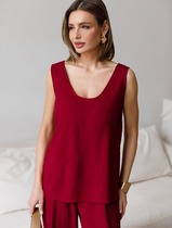 Свободный топ с U-вырезом изо льна с вискозой по косой