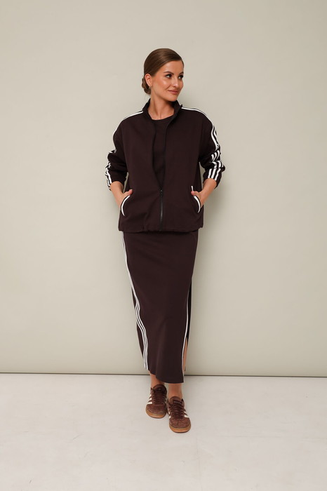 Костюм в стиле спорт-шик, выполнен из качественного трикотажого нейлона.