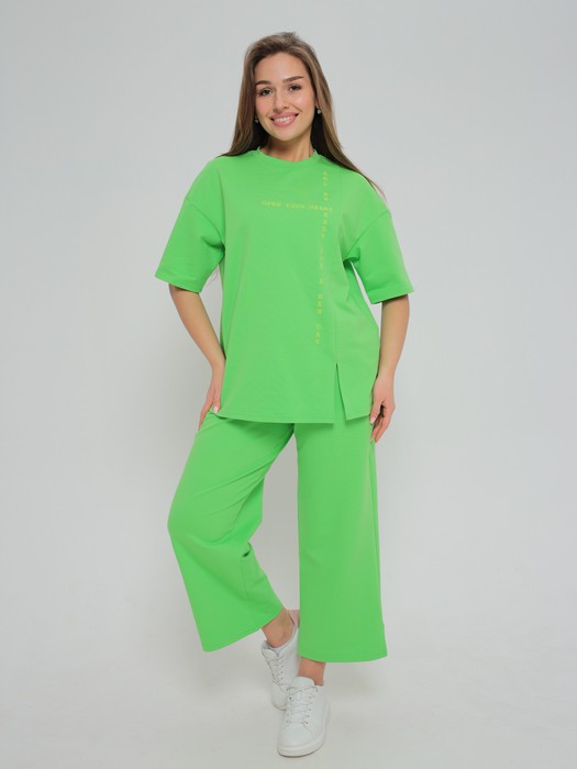 Костюм молодежный из гладкокрашеного трикотажного полотна «футер-двунитка», состоящий из футболки и брюк-кюлотов.