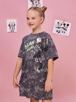 Пижама для девочки, состотящая из блузы и шорт. Блуза пижамная - из гладкокрашенного полотна "кулирка", свободжного покроя, с короткими цельнокроеными рукавами, V-образной горловиной и центральной бортовой застежкой на обметанные петли и пуговицы. В верпхней части левой полочки - принт, выполненный в технике шнлкографии. Борта и горловина окантованы основным материалом. Шорты - из полотна "кулирка" в клетку, расклешеные, короткие, с эластичной тесьмой по талии.