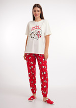 Пижама из гладкокрашеного трикотажного вискозного полотна, состоящая из футболки и брюк- кюлотов .
