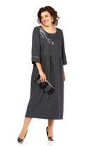 Платье в длине макси, выполнено из эластичного гипюра, обработано трикотажной эластичной подкладкой телесного цвета. Лиф отрезной по т линии талии. Обработаны чашки. Верх рукава собран на резинку. Рукав прямой до линии локтевого сгиба, имеет притачную деталь в форме клеша. Застежка - потаная молния в боковом шве.