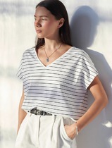 Vilatte Футболка с V-вырезом и цельнокроеным рукавом из премиального хлопка D49.
