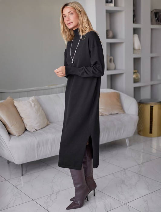 Состав: 82%Хлопок 18%ПА Плотность: 12 GG Параметры модели на первом фото: Рост 172, бюст 88, талия 64, бедра 88 Размер товара на первом фото: 42Платье тонкой вязки выполнено из хлопка. Лаконичная модель с высоким воротом дополнена манжетами и разрезами по бокам. Изделие свободно сидит по фигуре и не сковывает движений. Мягкая пряжа очень приятная к телу не колется и сохраняет тепло при этом не перегревая. Изделие дополнено металлическим логотипом бренда.