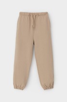 Однотонные брюки для мальчика из футера трехнитки с начесом. Эластичный пояс регулируется по ширине с помощью шнурка. У изделия эластичные манжеты и два кармана по бокам. Брюки сохраняют цвет и форму после многократных стирок.