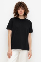 Удлиненная футболка из лёгкого набивного трикотажа супрем. Свободные рукава со спущенной линией плеча создают объём и свободный силуэт.