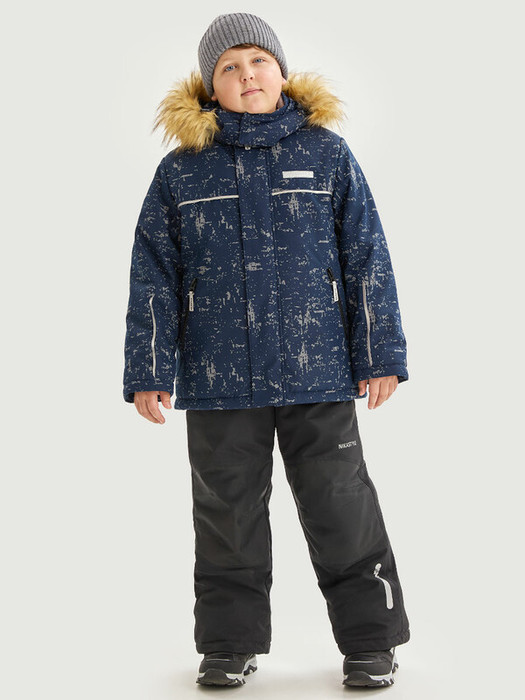 Костюм из мембранной ткани 5000/5000 с водо- грязеотталкивающей технологией TEFLON. Мембранная ткань - это непродуваемый и водонепроницаемый материал, который надежно защищает от ветра и влаги. Благодаря дышащим свойствам мембраны ребенку будет комфортно в любую погоду, и он не вспотеет. Дополнительно на ткань нанесен светоотражающий принт.  Ткань обработана снаружи экологически чистым протектором TEFLON для защиты от воды и грязи. Мембрана в сочетании с утеплителем нового поколения FIBERlite сохраняет тепло во время прогулок, позволяя телу дышать. Флисовая подкладка отводит влагу и имеет хорошие теплоизоляционные свойства.