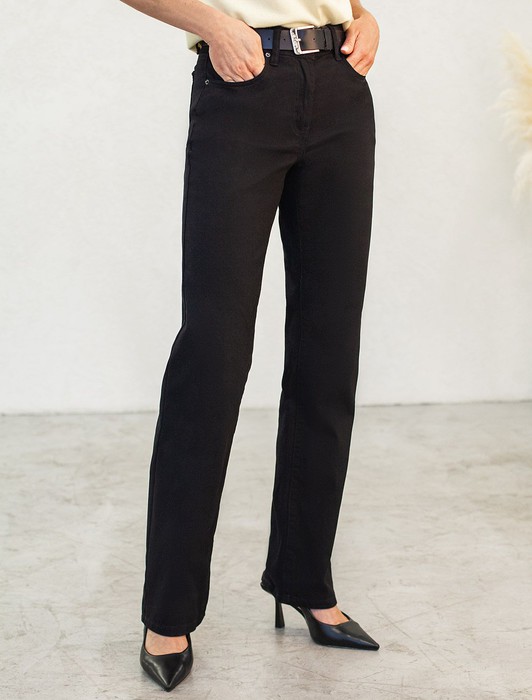 Состав: 94%Хлопок 6%ПУ Плотность: 15.5 OZ Параметры модели на первом фото: Рост 172, бюст 88, талия 64, бедра 88Прямые джинсы выполнены из эластичного денима. Удлиненная модель универсального черного цвета легко впишется в любой, даже строгий офисный образ с жакетом и блузкой. Комфортная посадка на талии подходит для любой фигуры, ткань хорошо тянется и не сковывает движений. На поясе сзади расположен нашивка из эко-кожи с логотипом бренда. Длина изделия позволяет выбрать к образу обувь на каблуке