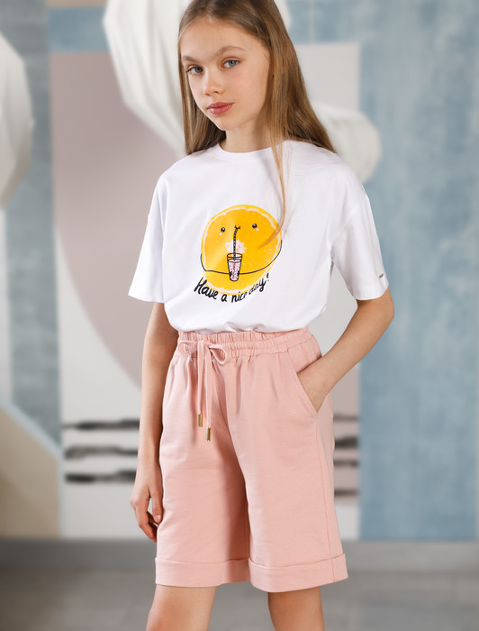 Состав: 100%ХлопокСвободные шорты с карманами, выполнены из премиального облегченного футера. Мягкое трикотажное полотно создаст приятное прилегание к телу. Модная форма подарит комфорт и сделает образ ребенка стильным. С футболкой F49.403 шорты составят отличный комплект, мотивирующий на движение!