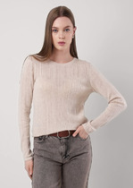 Джемпер с круглым вырезом выполнен из фактурного трикотажа в широкий рубчик. Модель идеально сидит по фигуре не сковывая движения. Хлопковый трикотаж поддерживает оптимальную температуру тела, поэтому в изделии будет комфортно в течении всего дня. Наличие эластана в составе гарантирует формоустойчивости. Базовая модель впишется в любой гардероб.