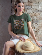 Совместные покупки Курган Женская одежда Футболки — Акция Vilatte Футболка из эластичного хлопка с принтом стразы D49.097 т.оливков