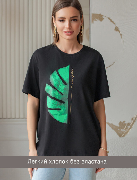 Совместные покупки Курган Женская одежда Футболки — Акция Vilatte Футболка из премиального хлопка с авторским принтом D49.089 черны