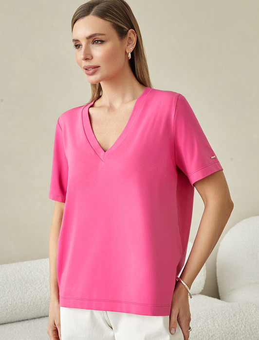 Акция Vilatte Футболка из премиального хлопка с эластаном D49.096 розовая фукси