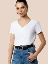 Однотонная футболка с V-образным вырезом выполнена из премиального хлопка. Добавление эластана в состав изделия способствует формоустойчивости. Самое высокое качество длинноволокнистых хлопковых волокон обеспечивает комфорт в любое время года.Универсальная базовая будет уместна не только в повседневном образе с денимом, но и в офисе с нестрогим дресс-кодом, в паре с брюками и жакетом.