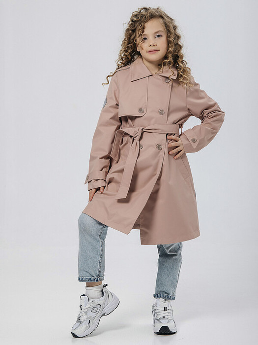Классический двубортный тренч - прекрасное дополнение к школьной форме. Тренч стильный, эргономичный. Подкладка – флис. Правая полочка и спинка дополнены отлетными кокетками. Застежка – пуговицы. Линия талии подчеркнута поясом. Два боковых кармана с широкими листочками. Отложной воротник. Дополняют модель удлиненные погоны и отделочные паты в нижней части рукавов. На отлетной кокетке спинки и правом рукаве светоотражающий термопринт. В боковом шве - светоотражающий флажок.Характеристики:Ткань верха: мембранная тканьПодклад: полиэстер