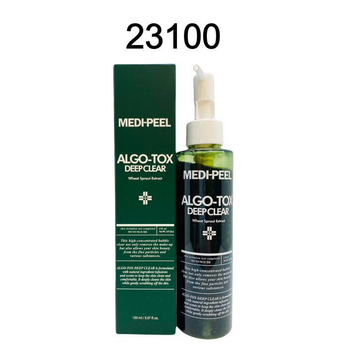 Гель для глубокого очищения кожи с эффектом детокса Medi-Peel Algo-Tox Deep Clear эффективно растворяет все виды загрязнений, стойкую косметику и тональные средства, растворяет жировые пробки и очищает поры. Комплекс из натуральных растительных компонентов оздоравливает и тонизирует кожу и обладает высокой антиоксидантной активностью. Средство поддерживает оптимальный уровень увлажнения, успокаивает раздражённую кожу и снижает риск появления воспалений. Улучшает общий цвет лица и повышает иммунитет кожи.Деликатно воздействует на поверхность эпидермиса не вызывая сухости и раздражений, подходит даже для чувствительной кожи. Глубоко очищает, растворяет комедоны и жировые пробки, выводит загрязнения из пор и сужает их, нормализует выработку кожного сала, укрепляет защитные функции кожи. Мягко осветляет, повышает эластичность и упругость. Основные действующие компоненты: Экстракт пророщенных ростков пшеницы способствует регенерации тканей, смягчает, питает, активно заживляет, очищает, оказывает противовоспалительное и антиоксидантное действие. Экстракт центеллы азиатской обладает противовоспалительным и ранозаживляющим действием, способствует восстановлению барьерных свойств кожи и удержанию влаги, снижает чувствительность кожи, уменьшает отеки, оказывает сосудоукрепляющее действие и уменьшает купероз. Ферменты лактобактерий сои увлажняет кожу и удерживает в ней влагу, восстанавливает защитные слои кожи и оказывает регенерирующий эффект. Питает клетки кожи, омолаживает и уменьшает мелкие морщинки. Комплекс из 5 видов пептидов увеличивают упругость и эластичность кожи, ускоряют процессы выработки организмом собственных волокон коллагена и эластина. Уменьшают глубину морщин и препятствуют обвисанию кожи. Укрепляют защитный барьер кожного покрова. Экстракт коры белой ивы нормализует работу сальных желез, сужает поры, стимулирует обновление клеток, очищает кожу от омертвевших клеток, улучшает состояние кожи и цвет лица. Кондиционирует и восстанавливает барьерные функции кожи.Подходит для всех типов кожи. Способ применения: нанесите достаточно количество средства на сухую кожу лица и распределите его. Слегка помассируйте кожу после того, как средство начнёт пениться. Спустя 30 секунд ополосните лицо и удалите остатки геля. Объём: 150 мл