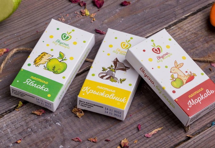 Яблочная пастила без сахара, консервантов и ароматизаторов. В у паковке 3 вкуса в индивидуальной коробочке.