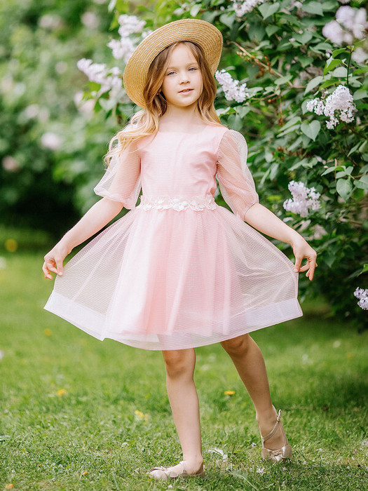 Легкое розовое платье из хлопка с юбкой из трикотажной сетки. Ткань верха 100% хлопок, сетка 100% полиэстер. Пояс украшен цветочками. Стильное платье с короткими объемными рукавами из сетки.Характеристики:Ткань верха: 100% хлопок Сетка - ПолиэстерПодклад 100% хлопокПроизводитель: batik
