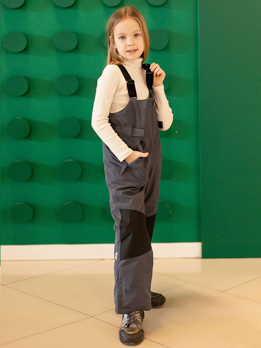 Полукомбинезон Скай детский зимний с регулировкой патами по талии, накладными карманами с клапанами, усилением колен а боковых швах по низу молнии. Цвет графит.  Особенности:  Светоотражающие элементы  Гладкая подкладка в брюках  Снегозащитная манжета  Регулируемые бретели  Усиление коленей, шагового шва и низа брюк Характеристики:Ткань верха: Oxford 300*300 (мембрана) Подклад: 210T Taffeta Утеплитель: 150гр Температурный режим: от -5 до -35СПроизводитель: batik