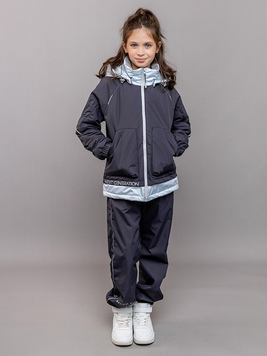 Комплект САНДРА для девочки из мембранной ткани. Куртка на утеплителе 100, брюки без утеплителя с подкладкой из мягкого ворсового трикотажа. Подкладка спинки, полочки, верхней части рукава и внутренний воротник из мягкого ворсового трикотажа. Куртка с рукавами кроя реглан для более свободных и комфортных движений и с иммитацией двойного низа для ощущения укороченной куртки. Центральная застёжка на молнию с внутренней ветрозащитной планкой и защитой от защипа подбородка. С воротником и съёмным капюшоном на кнопках. Объёмные накладные карманы на магнитах. Низ рукавов и низ брюк - манжеты с эластичной тесьмой. Пояс брюк на задней половинке стянут эластичной тесьмой. Брюки с ремнём из стропы. Светоотражающие элементы: кант в пройме полочек, подрезе спинки, термотрансферы на спинке, по низу правой полочки и по кругу на правой половине брюк.  Особенности:  Пропитка материала DWR Регулировка объёма капюшона Съемный капюшон Регулировка по низу куртки Светоотражающие элементы  Капюшон и низ куртки с регулировкой Характеристики:Ткань верха: мембрана Подклад: Poly brushed Утеплитель: 100 - куртка, Брюки без утеплителя на Poly brushed Температурный режим от +3°С до -10°СПроизводитель: batik
