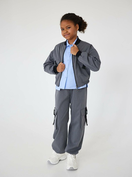 Брюки-карго серые для девочки являются абсолютным трендом этого сезона. Широкие брюки с двумя накладными карманами по бокам и боковыми карманами. Модель с высокой посадкой и завышенной талией подчеркнет фигуру и добавит уверенности. Идеальный вариант для школьниц, предпочитающих нестандартную школьную форму. Модный ремень-стропа. Отлично смотрится как костюм вместе с нашим укороченным бомбером.Характеристики:Ткань: