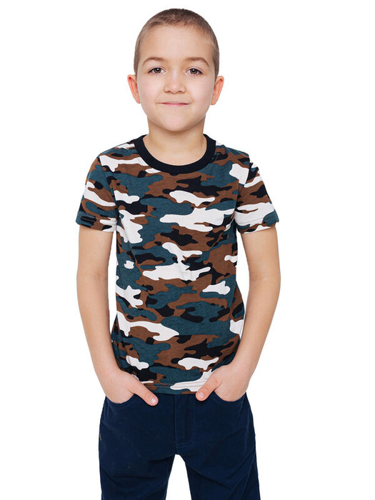 Футболка камуфляж для детей с короткими рукавами. Подойдет детям от 4 до 14-16 лет. Хлопковая футболка подойдет для праздников 9 мая и 23 февраля, а также повседневного ношения.