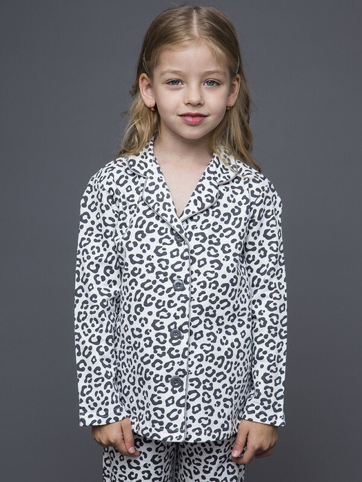 Мягкий и комфортный пижамный комплект для девочки. Состоит из футболки с длинным рукавом и брюк в модном бежевом оттенке с леопардовым принтом. Нежная ткань – приятная к телу, не вызывает раздражения. Свободный крой – не сковывает движения, идеально для сна и отдыха. Резинка на брюках не давит, футболка легко надевается и застегивается на пуговицы. Идеально для дома, поездок и сладких снов.Характеристики:Ткань: Футер 2х нитка пенье 100% хлопокПроизводитель: batik