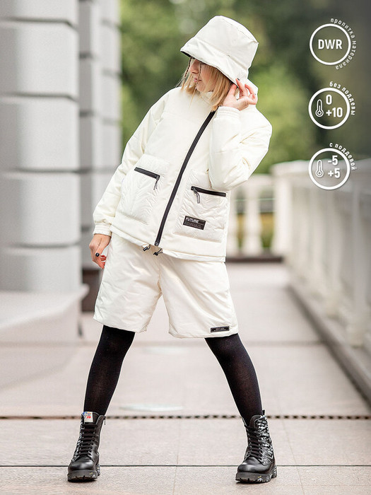 Шорты для девочки Шерон утепленные из курточной ткани с поясом. Стильные белые шорты для детей можно носить весной и осенью с колготками и леггинсами.   Особенности:  Эластичный пояс Водоотталкивающая пропитка ткани Боковые карманы Декоративная нашивка Характеристики:Ткань верха: Курточная ткань с метализированным эффектомПодклад: полиэстер Утеплитель: 60 грТемпературный режим от +10 до -5 СПроизводитель: batik