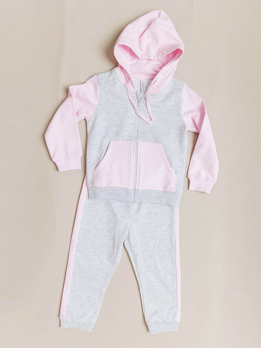 Толстовка на молнии для девочки из футера серо-розовая. Стильная детская толстовка с капюшоном - незаменимая вещь для малыша в прохладную погоду. Имеет боковые карманы и эластичные манжета рукавов.Характеристики:Ткань: Футер пенье 100% хлопокПроизводитель: batik