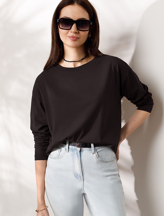 Совместные покупки Курган Женская одежда Футболки — Базовый лонгслив из премиального хлопка с эластаном