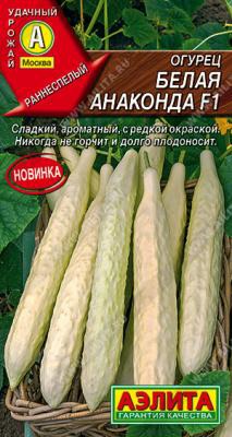 Раннеспелый партенокарпический гибрид с необычной окраской плодов. От всходов до первого сбора около 45 дней. Растения слабоветвистые, преимущественно женского типа цветения. Наличие мужских цветков помогает не перегружать растение урожаем и формировать ровные плоды. Огурцы длиной 25-35 см, массой 160-170 г, с тонкой кожицей и маленьким семенным гнездом. По вкусу они намного слаще обычных огурцов и никогда не горчат. Станут изюминкой в салатах и сэндвичах. Гибрид устойчив к перепадам температуры и болезням, плодоносит до середины осени. Урожайность 13-15 кг/м2.