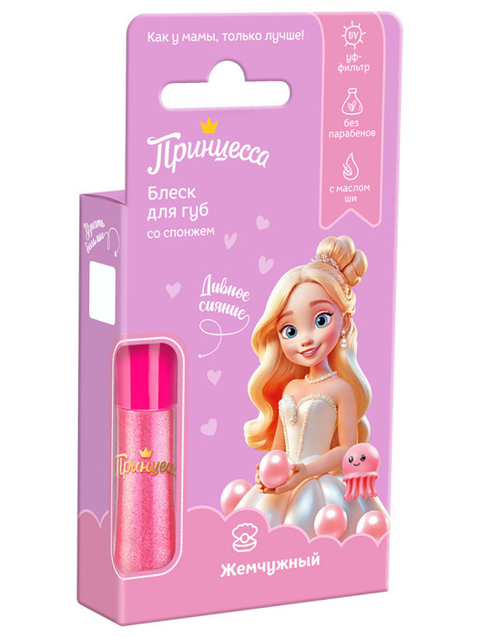 ПРИНЦЕССА Блеск для губ детский со спонжем Жемчужный