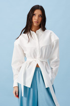 27.03 Vilatte Укороченная блузка из формоустойчивого хлопка D29.272 белый-голуб