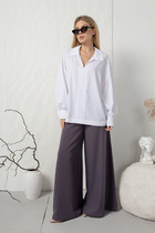 Блузка женская прямого силуэта с притачным рукавом. По переду V-образный вырез с притачной планкой и складкой. Рукав на пате. Низ фигурный.