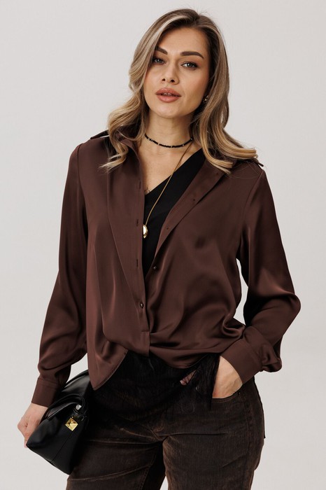 На модели в блузе цвета «горький шоколад» кружевной топ 1664.