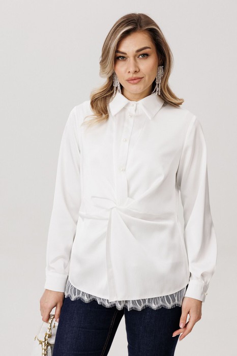 Детали довершают образ безупречного качества: строгий отложной воротник на стойке, длинные рукава, заканчивающиеся элегантными манжетами на пуговицу, и аккуратная застежка на петли и пуговицы на притачной планке. Идеальное сочетание блузы вместе с кружевным топом 1664.