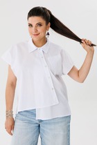 Рубашка свободного кроя, выполнена из полотна розового цвета. Воротник отложной на стойке. По плечевым швам сборка. Рукав втачной, со спущенной линией плеча, низ рукава на резинке. Спинка цельная. Застежка центральная пуговицы. Низ прямой. Длина рукава от края горловины 73 см. Длина по спинке 73 см.