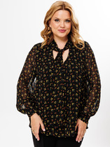 Блуза свободного кроя с отложным воротником на планке с застёжкой на петли – пуговицы контрастного цвета. Рукав со спущенной проймой на манжете. Спинка на кокетке со встречной складкой. Низ спинки имеет фигурную форму.