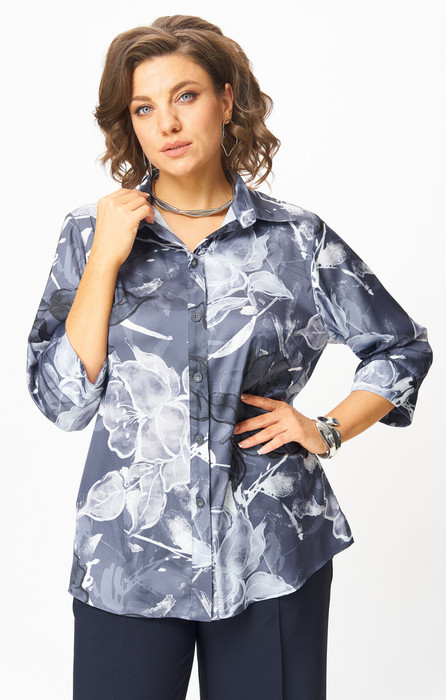 Совместные покупки Курган Женская одежда Блузки, рубашки — Блуза БелЭльСтиль 877 синий принт