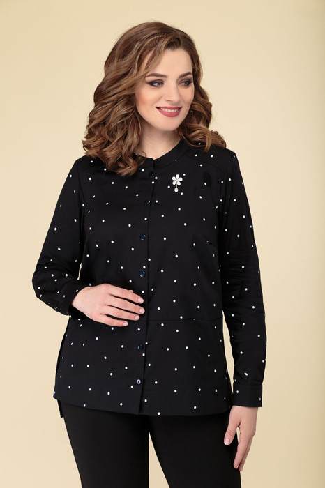 Совместные покупки Курган Женская одежда Блузки, рубашки — Блуза ДаЛи 5373Б темно-синий+горох