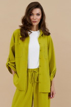 Блуза женская свободного прямого кроя. Воротник рубашечный, застежка на петли и пуговицы. Рукав отрезной на базе цельнокроеного, длинный с широкой манжетой. На левой манжете декоративная вышивка. По переду имитация накладного кармана. По спинке кокетка с бантовой складкой и декоративной патой. В боковых швах разрезы.