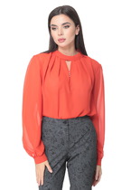 Блуза прямого силуэта из хлопковой ткани, позволит создать вам необходимый легкий образ, комфорт и удобство. По центру полочки застежка в виде планки на петли и пуговицы, Вырез горловины V-образной формы. Рукав втачной, низ обработан отрезным воланом. В боковых швах предусмотрены разрезы.