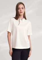 Воротник-стойка рубашечного типа добавляет структуру и выразительность, а нагрудная выточка обеспечивает идеальную посадку. Левую полочку украшает накладной карман с декоративной печатью, подчеркивая стильный акцент. По спинке блузки расположена изящная декоративная печать, придающая изделию оригинальности и индивидуальности.