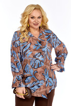 Блузка прямого силуэта из хлопковой ткани с фигурным низом. Воротник –стойка, по центру застежка на кнопки. Рукав спущенный с заниженной проймой, по низу рукава сборка и декоративная манжета. По переду декоративная кулиса с фиксаторами для регулирования степени прилегания изделия. На спинке кокетка и сборка по центру. Обращаем ваше внимание, что фурнитура может отличаться от фото.