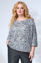 Блуза женская прямого силуэта. По переду притачные отлетные декоративные планки. V-образный вырез горловины. Воротник-стойка. Слегка укороченная линия плеча. По окату рукава сборка. С изнанки шва притачивания рукава - подокатник для усиления эффекта сборки оката. По низу рукава также сборка. Рукав застегивается на манжет с одной пуговицей. По боковым швам разрезы.
